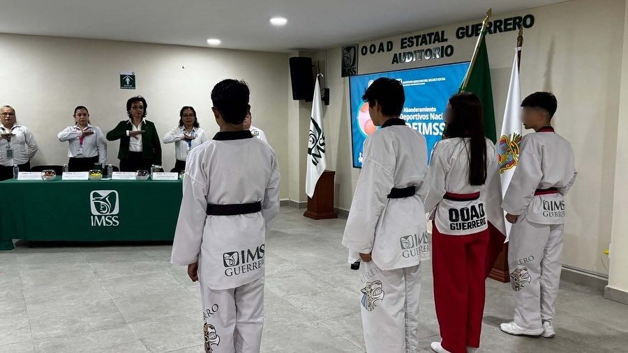 Con entusiasmo, el Instituto Mexicano del Seguro Social (IMSS) en Guerrero realizó la ceremonia de abanderamiento del equipo que representará al estado en los Juegos Nacionales ODEIMSS 2025, en las disciplinas de taekwondo y natación, que se realizan del 5 al 11 de octubre en el Centro Vacacional IMSS Oaxtepec, Morelos.