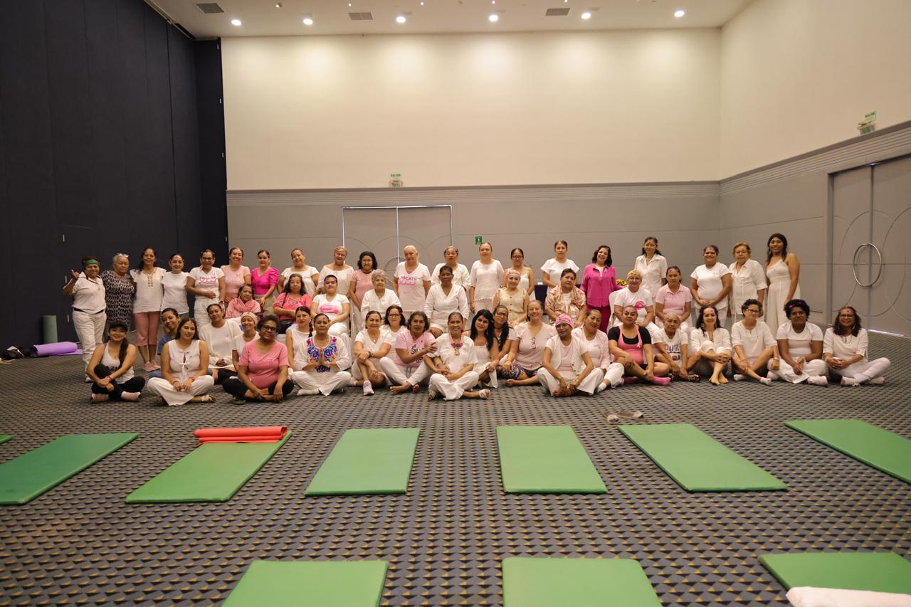 Con gran respuesta, se llevó a cabo la clase de yoga para pacientes con cáncer en el Hotel Azul Ixtapa, donde participaron alrededor de 80 mujeres.