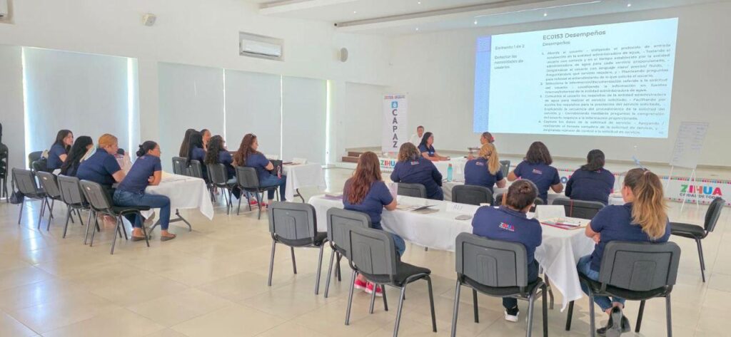 Este viernes, 20 colaboradoras que atienden directamente a los usuarios recibirán la certificación estándar EC0153 por la “Atención a usuarios en la solicitud de servicios en entidades administradoras de agua potable”. Además, personal del área de Cultura del Agua ya cuenta con la certificación EC0180 en Promoción de la Cultura del Agua.