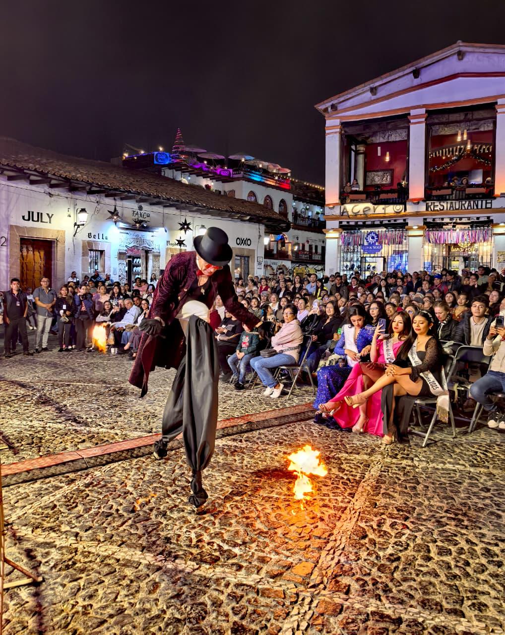 En el escenario principal de la Plaza Borda, familias taxqueñas y turistas disfrutaron de una noche llena de emoción con la presentación musical Divas, El Concierto, un espectáculo que rindió tributo a grandes voces femeninas de la música mexicana.