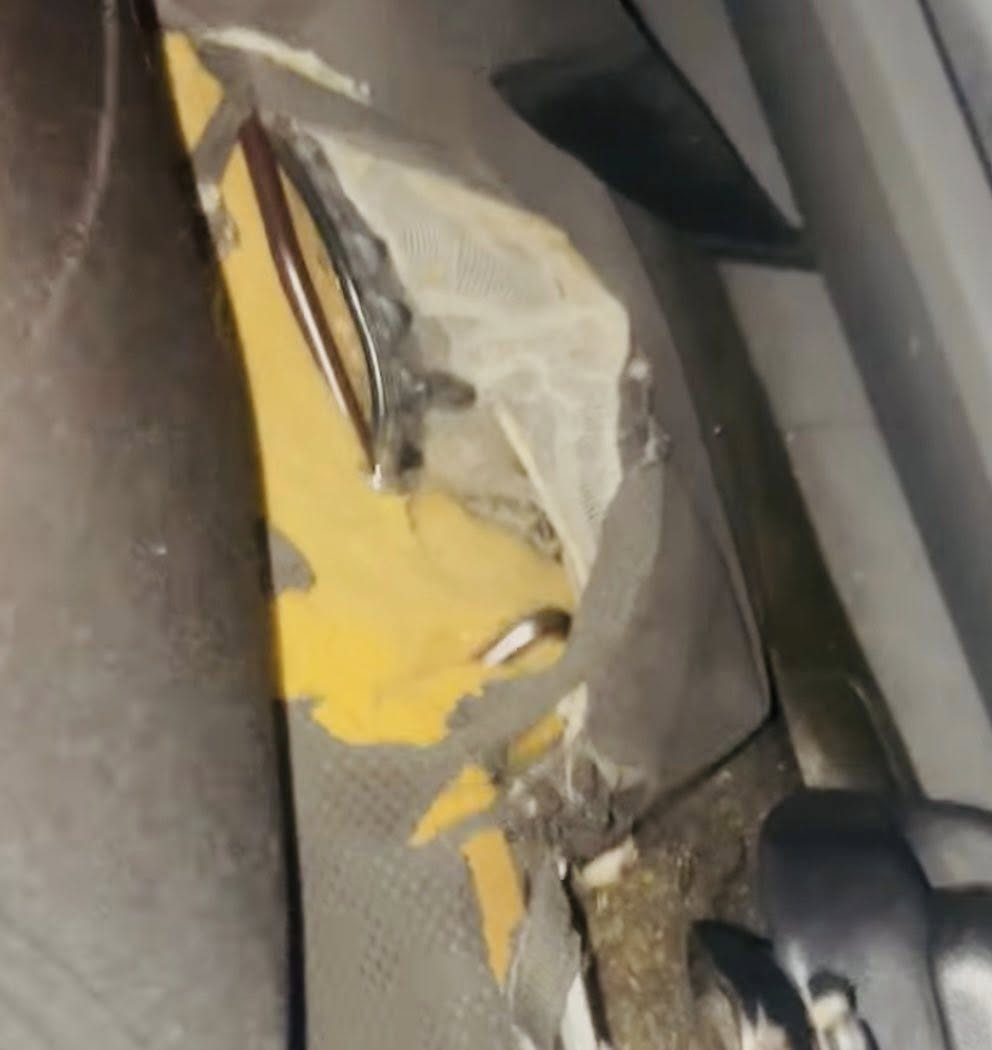 Una de las denuncias fue realizada por Karla Pineda, quien informó que resultó lesionada al abordar una unidad con destino a la comunidad de La Puerta. Explicó que una varilla expuesta en el asiento le provocó una herida en la parte baja de la espalda. La afectada difundió un video en el que se observan asientos rotos con partes metálicas visibles.