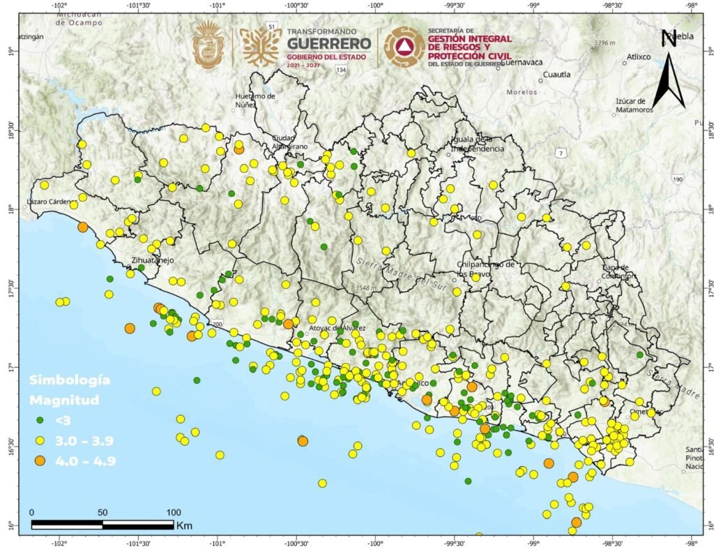 De acuerdo con la Secretaría de Gestión Integral de Riesgos y Protección Civil del gobierno de Guerrero, el SSN reportó que esos 418 sismos tuvieron “magnitudes que se encuentran en un rango de 1.9 y 4.5”.