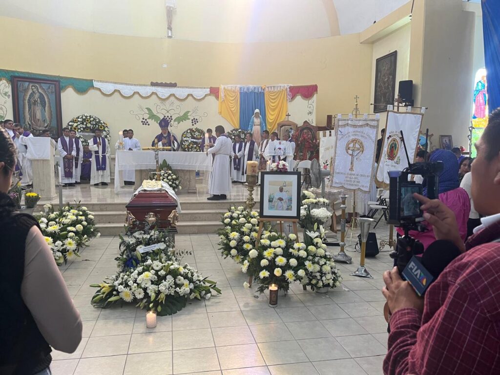 La ceremonia religiosa se llevó a cabo en la parroquia San Cristóbal, en el centro de Mezcala, municipio de Eduardo Neri. La misa fue oficiada por el obispo de la diócesis Chilpancingo-Chilapa, José de Jesús González Hernández, quien encabezó el homenaje de cuerpo presente en memoria del sacerdote de 58 años.
