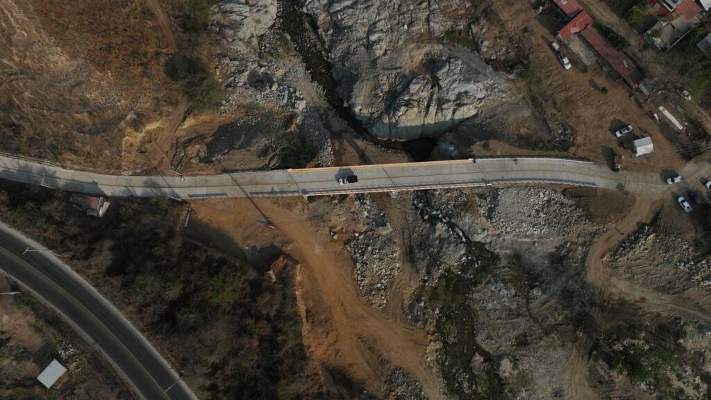 Junto al titular de la Secretaría de Infraestructura, Comunicaciones y Transportes de México, Jesús Antonio Esteva Medina, la jefa del Ejecutivo señaló que este es uno de los casi 70 puentes que el gobierno de México ha rehabilitado en Guerrero a través de la SICT, tras el paso del huracán John.