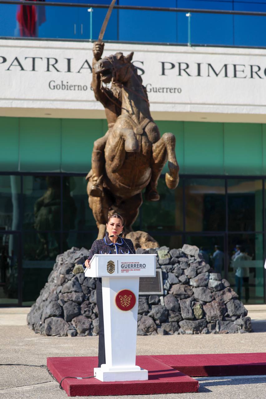 Durante su mensaje, la mandataria estatal destacó que febrero es un mes de profundo significado histórico para México, al conmemorarse el aniversario de la Constitución Política y el Día de la Bandera, símbolo supremo de unidad, identidad y soberanía nacional, al tiempo de subrayar que Guerrero tiene una aportación fundamental a la historia del país, al ser Iguala la Cuna de la Bandera Nacional.