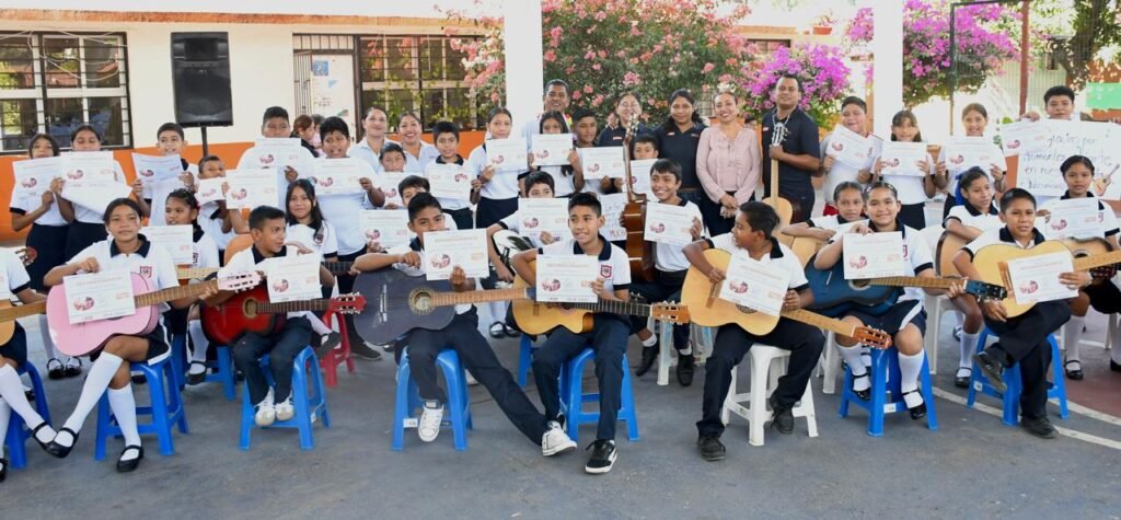 Zihuatanejo, Gro.- Como parte del programa Música en mi Zihua, la Casa de la Cultura llevó a la escuela primaria Juan N. Álvarez, ubicada en la colonia Nuevo Amanecer, un taller de guitarra en el que participaron 57 alumnos y que, el viernes de la semana pasada, con la representación de la presidenta Lizette Tapia Castro, fue clausurado por la regidora de Educación, Cultura, Deporte y Juventud, Mayra Liz Ruiz Pineda.