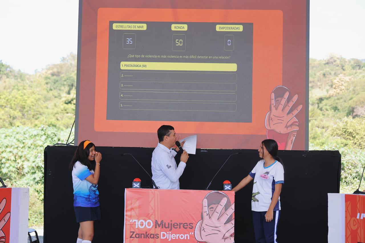 En el marco de los 16 Días de Activismo por el Mes Naranja, que promueve la prevención y erradicación de la violencia contra las mujeres, el Gobierno Municipal, encabezado por la presidenta Lizette Tapia Castro, a través de la Dirección del IMJUVE, organizó el programa “100 Mujeres Zankas Dijeron”.