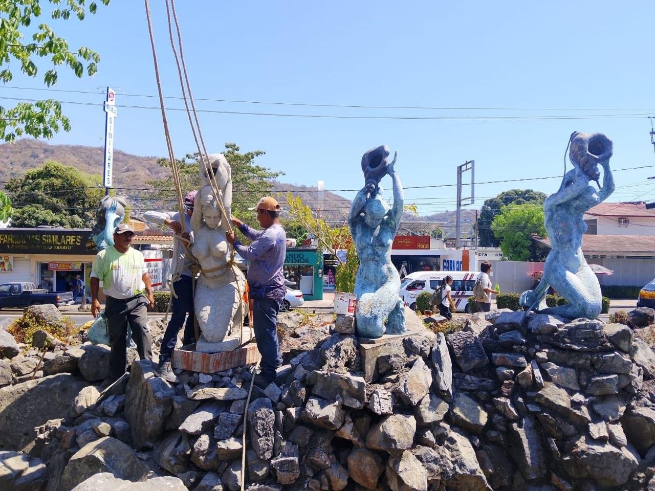 Asimismo, el director de esta dependencia comentó que se comenzarán a intervenir distintas áreas verdes que presentan diversos daños estructurales y de imagen. Entre estos espacios se encuentran las áreas verdes ubicadas en una de las avenidas más importantes de la ciudad, como lo es la Av. Paseo de Zihuatanejo Oriente, frente al Ayuntamiento, donde se localiza uno de los elementos característicos de la ciudad: la Fuente de las Sirenas.