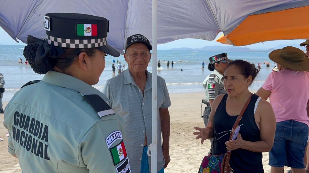 Elementos de la Guardia Nacional mantienen y refuerzan acciones de proximidad social en Ixtapa-Zihuatanejo durante este domingo, en la recta final del periodo vacacional de Semana Santa y Semana de Pascua, con el objetivo de brindar seguridad a turistas y residentes en carreteras y zonas de playa.