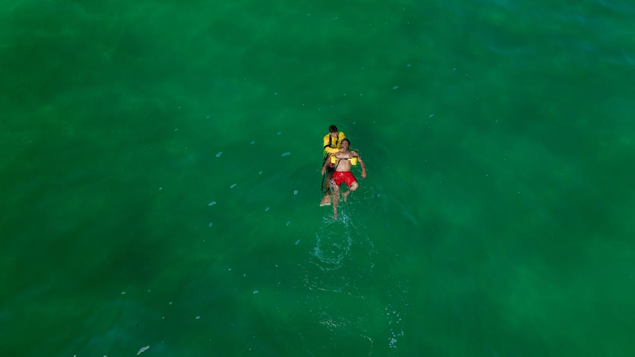 La alcaldesa Tapia Castro presenció el simulacro de rescate de una persona en riesgo de ahogarse, durante el cual los auditores supervisaron la actuación del personal en playas, tomando el tiempo de reacción y la forma de atender a la persona rescatada.