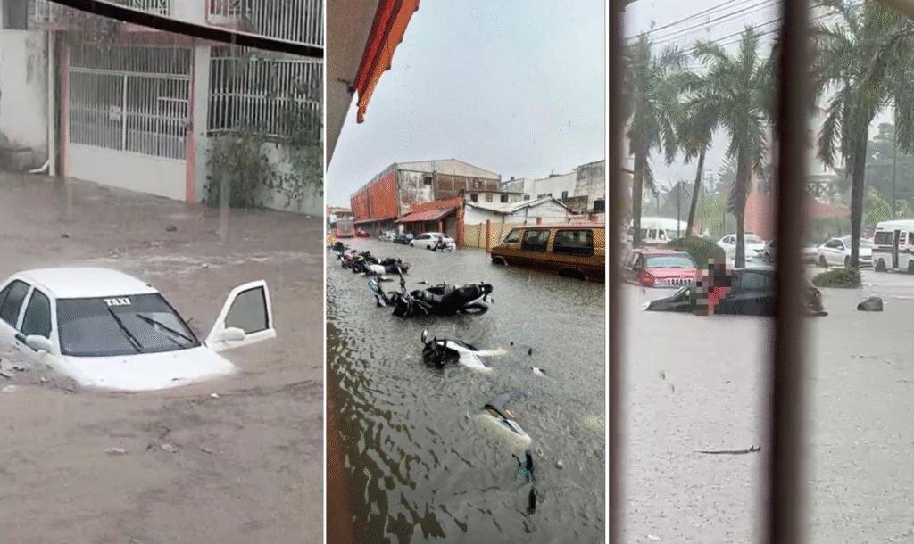 En la colonia Vicente Guerrero, parte baja, un taxi tipo Tsuru quedó atrapado por el agua, y su conductor tuvo que evacuar el vehículo para resguardarse; otros dos corrieron con la misma suerte en la calle lateral de la tienda Sam’s Club. Asimismo, dos más fueron arrastrados por una fuerte corriente en la colonia Agua de Correa, tras el desbordamiento del arroyo.