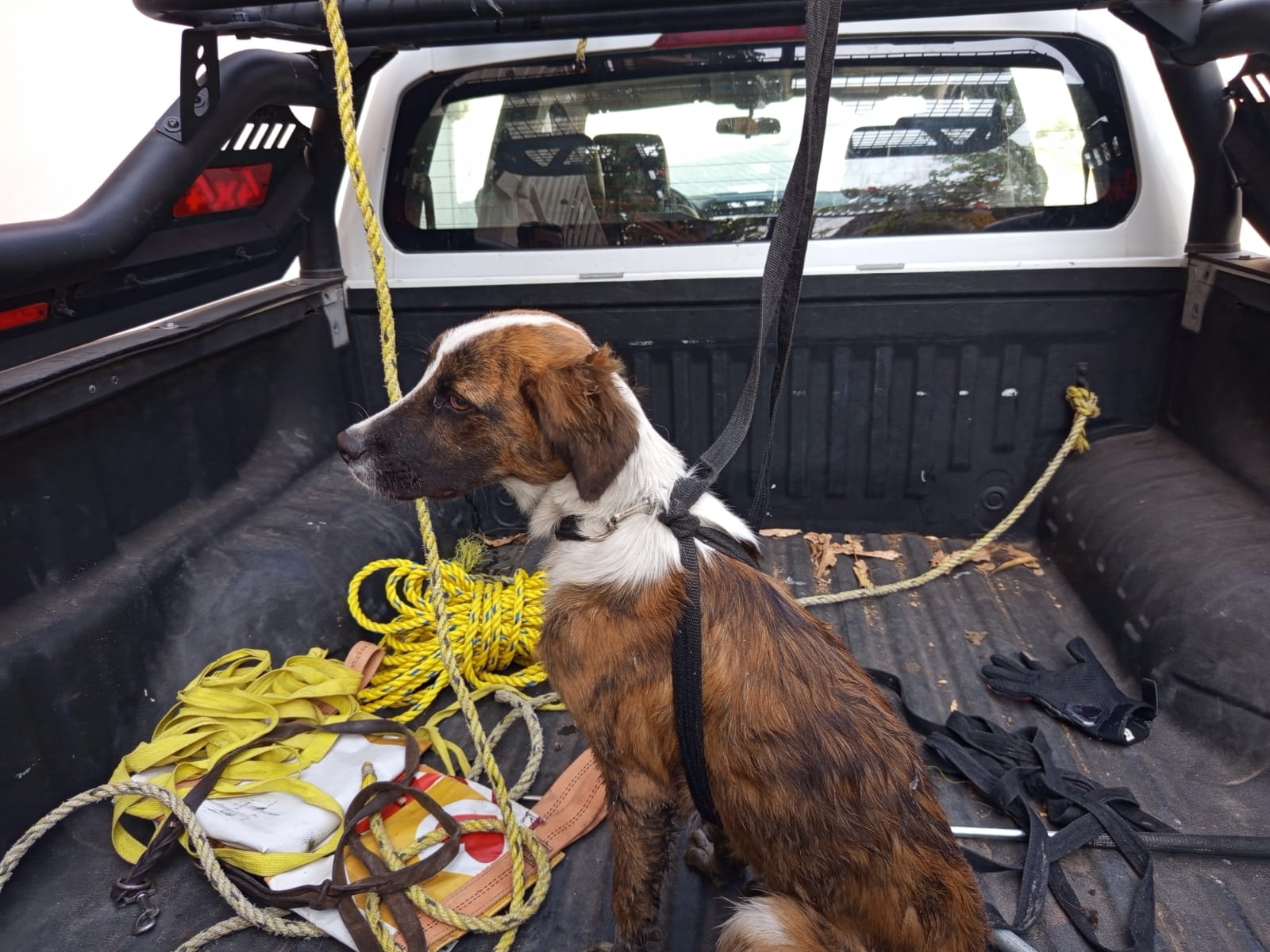 A las 10:20 horas, la unidad oficial PC-070 acudió al punto para ejecutar las maniobras necesarias que permitieron liberar al cachorro, de aproximadamente un año de edad.