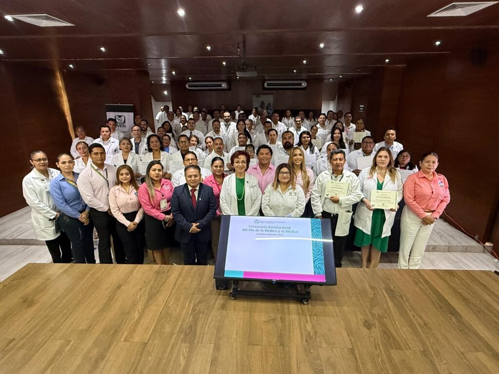 Durante la ceremonia conmemorativa del Día de la Médica y el Médico, celebrada el 23 de octubre, la titular del IMSS en Guerrero, doctora María de Lourdes Díaz Espinosa, destacó que la labor del personal médico es esencial para fortalecer la atención con calidad, calidez y profesionalismo.