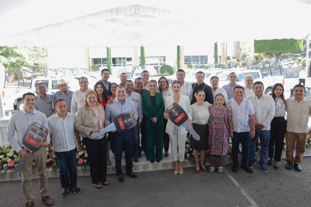En este contexto, la gobernadora entregó 59 patrullas equipadas a 29 municipios prioritarios que cumplieron con los procedimientos del Secretariado Ejecutivo del Sistema Nacional de Seguridad Pública, así como 528 chalecos tácticos y 523 cascos de protección, fortaleciendo las capacidades operativas de las corporaciones estatales y municipales.