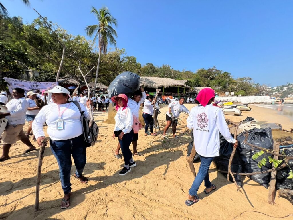 ACAPULCO, Gro.— Trabajadores de playa realizaron una jornada de limpieza en la isla La Roqueta, donde retiraron envases de plástico, PET, desechos sólidos, restos de embarcaciones, pedazos de fibra de vidrio, varillas metálicas, hojas y mobiliario deteriorado, entre ellos sillas, mesas y camastros de plástico.