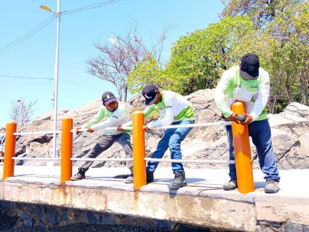 Además, se realizan reparaciones en el Paseo del Pescador con el cambio de cuerda de los barandales, la cual mantiene el perímetro seguro y evita algún accidente.
