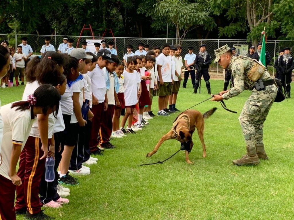 Niñas y niños de diferentes escuelas participaron en dinámicas realizadas por la Dirección de Seguridad Pública Municipal y elementos de la Secretaría de Marina. Disfrutaron de exhibiciones caninas, juegos infantiles, recorridos en patrullas y de la presencia de botargas que alegraron la jornada.
